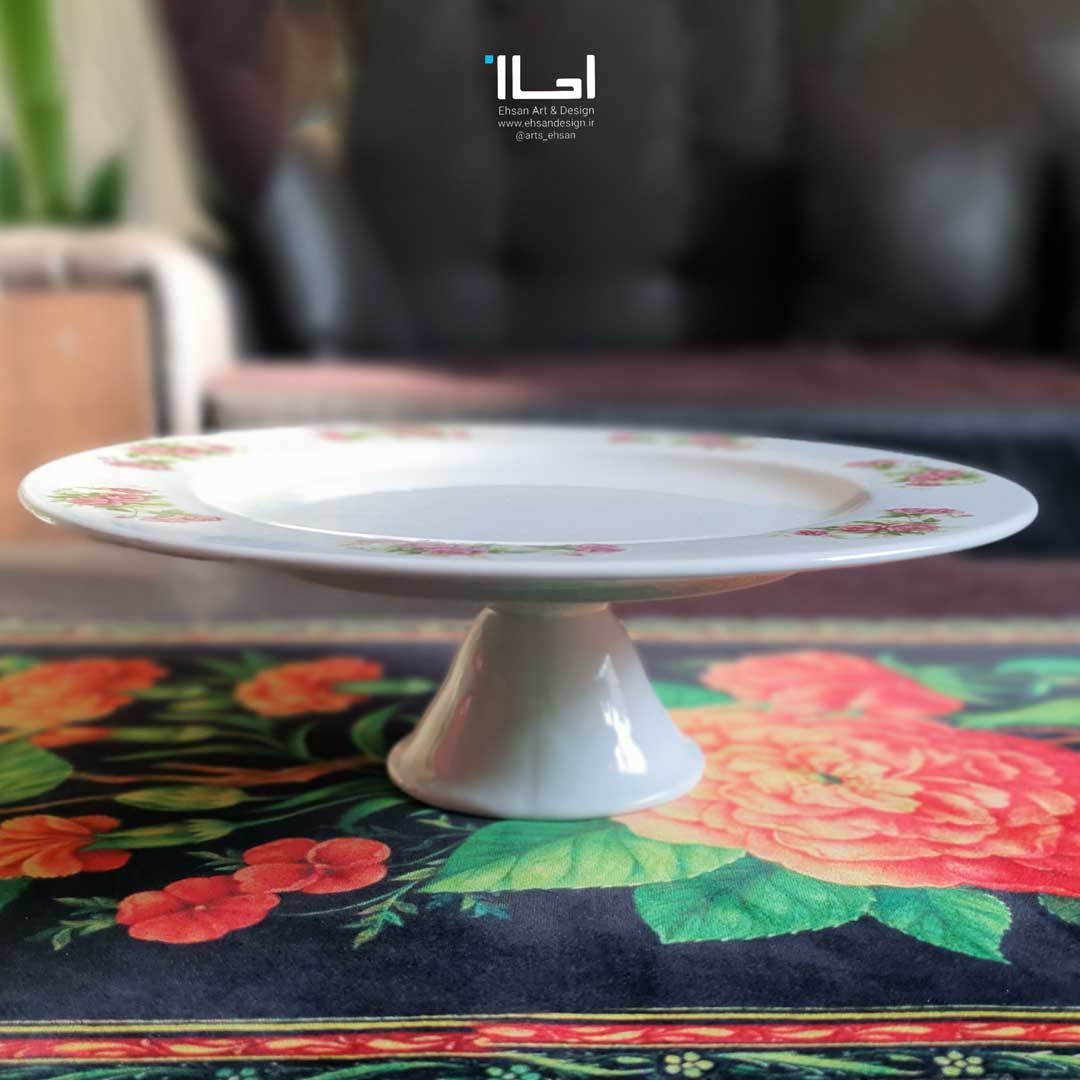 در کنار این شیرینی خوری پایه دار می تونید بشقاب گلسرخی  باهاش ست کنید. ضمن اینکه پیشنهاد می کنیم میوه خوری پایه دار همین مدل رو هم داشته باشید تا میز پذیراییتون جذاب تر بشه.